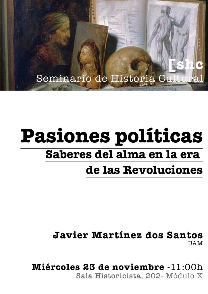 - 23 de noviembre: Javier Martínez dos Santos, “Pasiones políticas: Saberes del alma en la era de la Revoluciones”