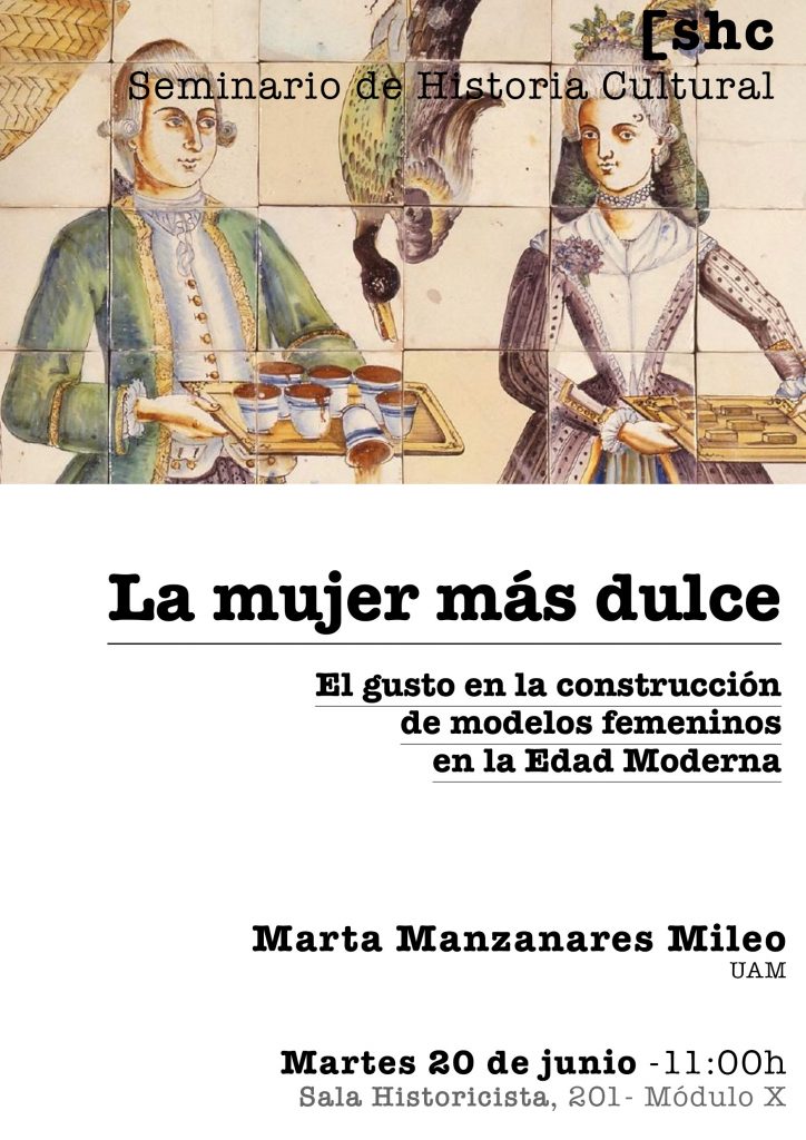 - 20 de junio: Marta Manzanares Mileo (UAM), “La mujer más dulce. El gusto en la construcción de modelos femeninos en la Edad Moderna”