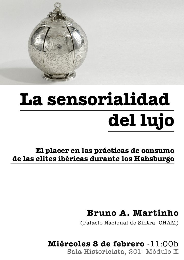 - 8 de febrero: Bruno A. Martinho (Palacio Nacional de Sintra- CHAM): La sensorialidad del lujo. El placer en las prácticas de consumo de las élites ibéricas durante los Habsburgo”