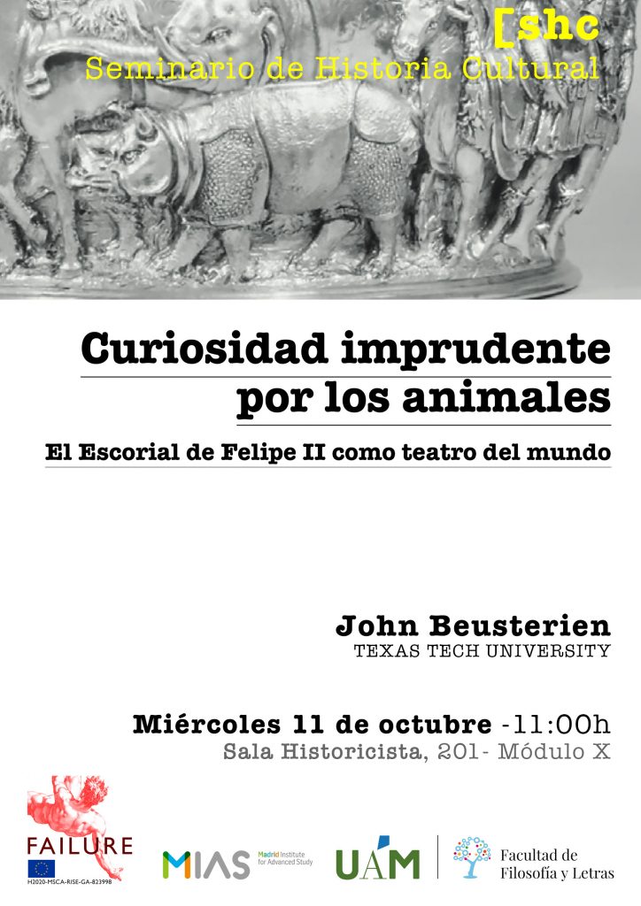 11 de octubre 2023: John Beusterien (Texas Tech University): “Curiosidad por los animales: El Escorial de Felipe II como teatro del mundo”