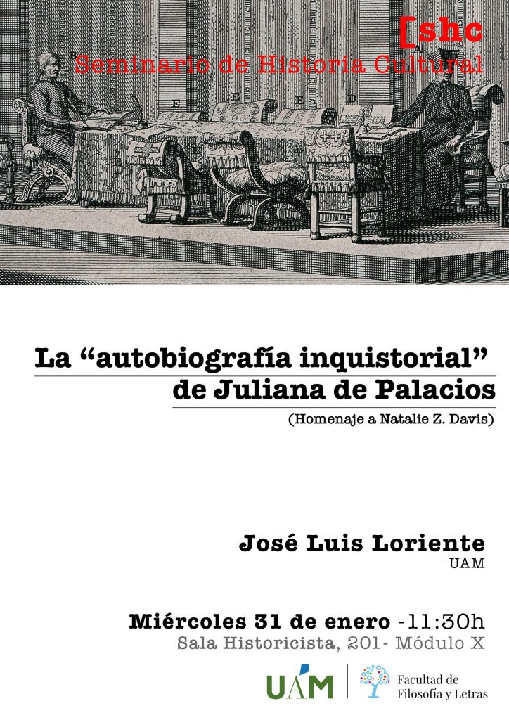 31 de enero de 2024: José Luis Loriente (UAM): “La “autobiografía” inquisitorial de Juliana de Palacios. (Homenaje a Natalie Z. Davis)”